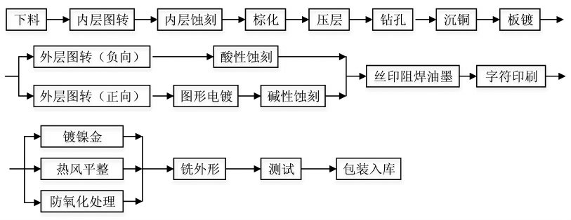 圖1 印刷電路板總體生產(chǎn)工藝流程圖