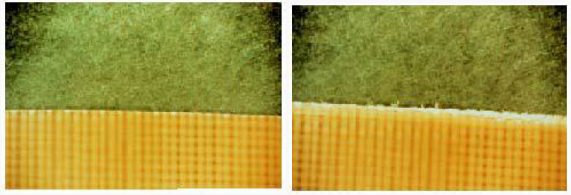 合格:無(wú)露織物,玻璃纖維仍被樹脂完全覆蓋