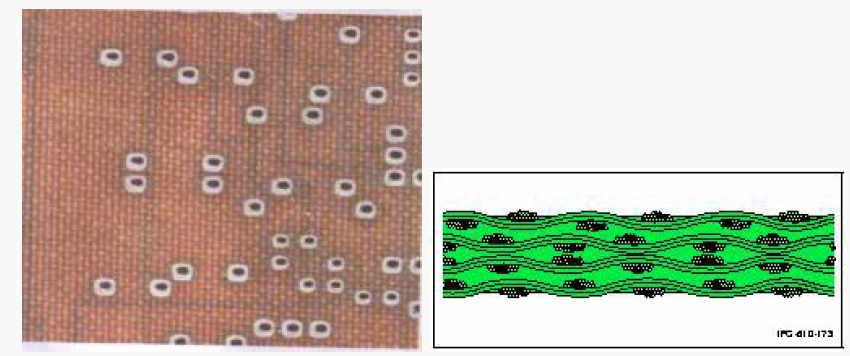 2、裸露迸裂的纖維造成線路間距縮減≤20%;