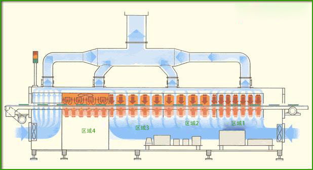 回流焊是一種焊接方法,其中將元件安裝在焊點上(或以糊狀形式)的電路板,或預制件),通過熔爐,焊料在熔爐中熔化并形成焊點。批處理爐(室式爐)可以一次裝載一批印刷電路板。操作員將給定批次板的溫度曲線輸入到爐控制器中,這會根據時間改變螺旋的加熱程度。烘箱氣氛也得到了很好的控制,包括使用真空。回流箱式爐有利于小批量生產、試點項目以及必須仔細控制爐溫分布和氣氛的場合。第二種類型的熔爐內置于技術生產線中。... 帶有未焊接元件的 PCB 從一端連續送入回流焊爐,并在另一端排出已經焊接的元件。因此,內置烤箱可以是普通傳送帶的一部分。他們從自動機器沿傳送帶接收付款,無需操作員干預。沿烘箱長度的各個區域的溫度和傳送帶的速度決定了回流焊接的溫度曲線。圖 1 顯示了一個四區回流焊爐的例子。